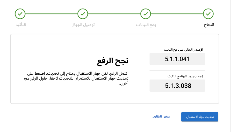 إذا اخترت تحديث جهاز الاستقبال، سوف تحتاج إلى التأكد من حصولك على وصول إداري إلى كمبيوترك. إذا لم يكن لديك وصول إداري، الرجاء الاتصال بالدعم الفني.