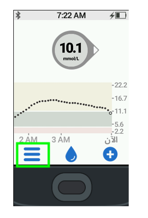 للتأكد من تحديث برنامجك، اتبع الخطوات أدناه على جهاز الاستقبال Dexcom G6: