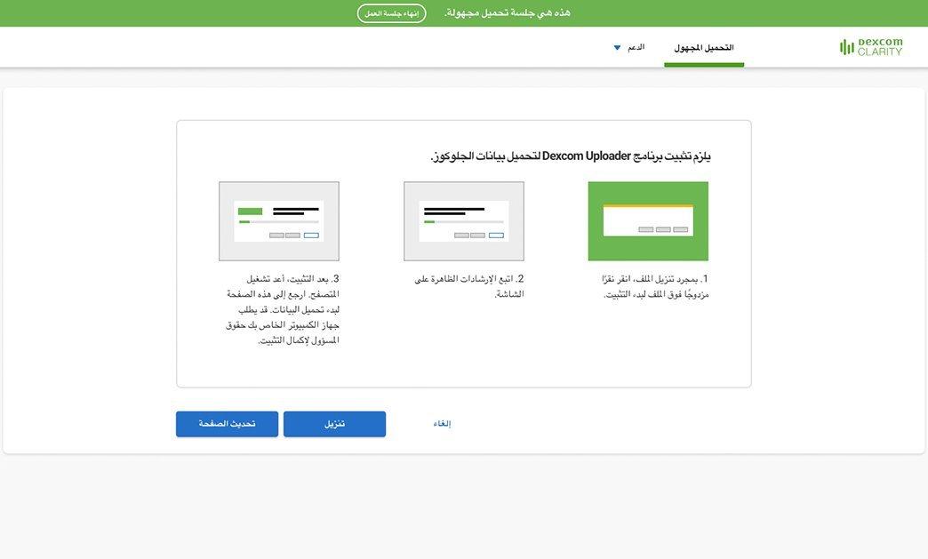 الخطوة 3: إذا لم تثبت “Dexcom Uploader” في وقت سابق، سوف يطلب منك تحميله إلى كمبيوترك. إذا كان لديك بالفعل “Dexcom Uploader” على كمبيوترك، انتقل إلى الخطوة 5.
