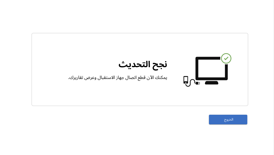 بمجرد اكتمال الرفع، سوف ترى هذه الشاشة لتأكيد نجاح التحديث. اضغط على زر “exit” واقطع اتصال جهاز الاستقبال، وابدأ جلسة مستشعر جديدة.