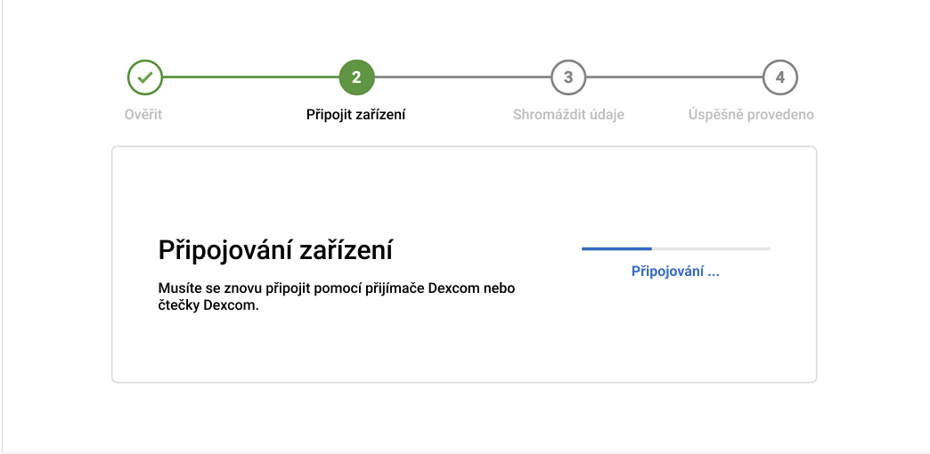 Pokud stisknete Pokračovat, váš přijímač Dexcom G6 se začne aktualizovat. Vyčkejte prosím až 15 minut, dokud aktualizace nebude dokončena.