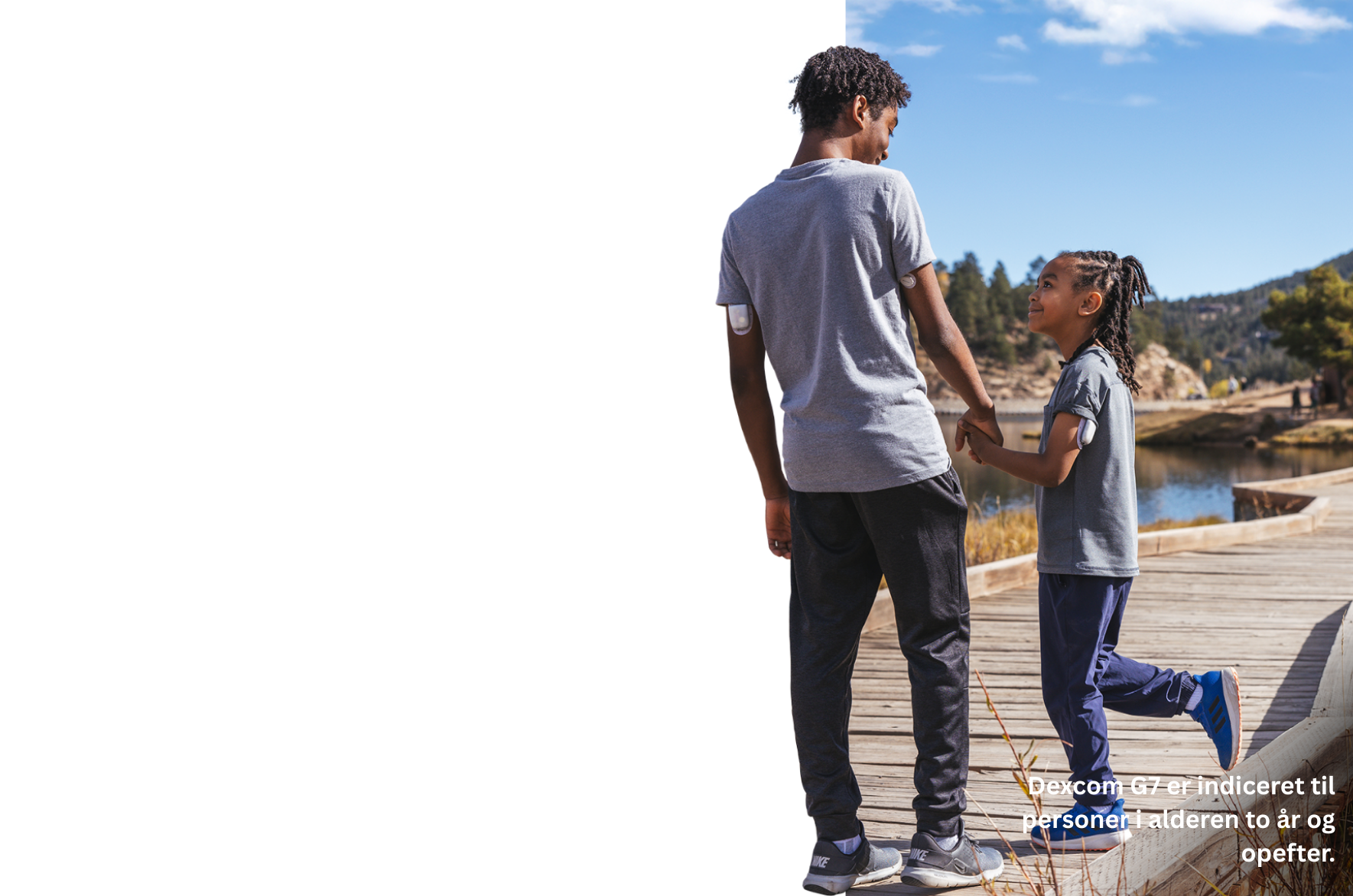 Se brugervejledningen til Dexcom G7 for fuldstændig sikkerhedsinformation, inklusive indikationer, kontraindikationer, advarsler, forsigtighedsregler og instruktioner. * Der kræves fingerprik til at tage beslutninger om diabetesbehandling, hvis symptomerne eller forventningerne ikke stemmer overens med aflæsningerne.