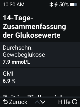Durchschnittliche Glukose: Der Durchschnitt aller Sensormesswerte im ausgewählten Datumsbereich.
