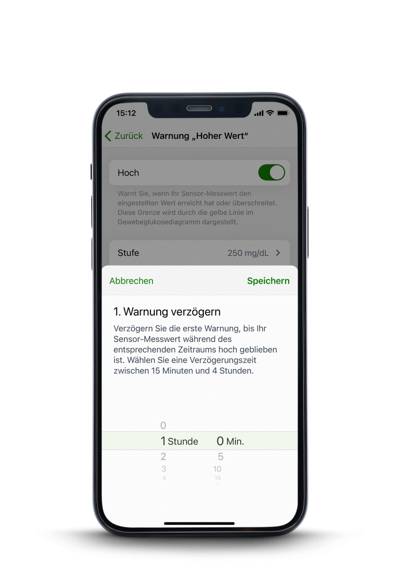 Die einzige CGM-Marke mit einer Einstellung zur Verzögerung des 1. Hoch Alarms, die Ihrem HCL-System Zeit zum Handeln gibt, bevor Sie einen unerwünschten Alarm erhalten.