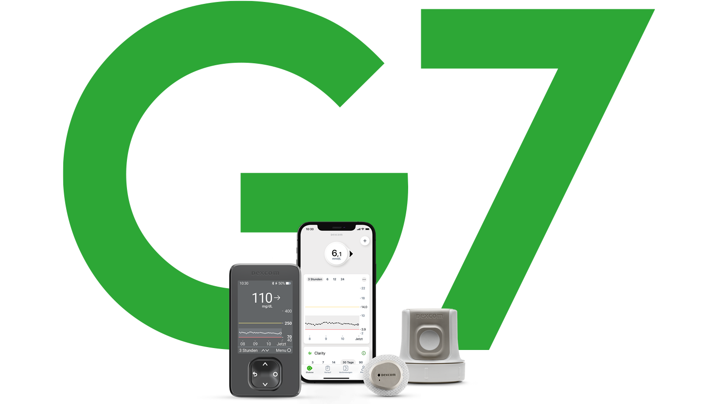 Wenn du das Dexcom G6 verwendest, kannst du dieses Jahr bereits auf Dexcom G7 wechseln! Kleiner, schneller, einfacher. Worauf wartest du noch?