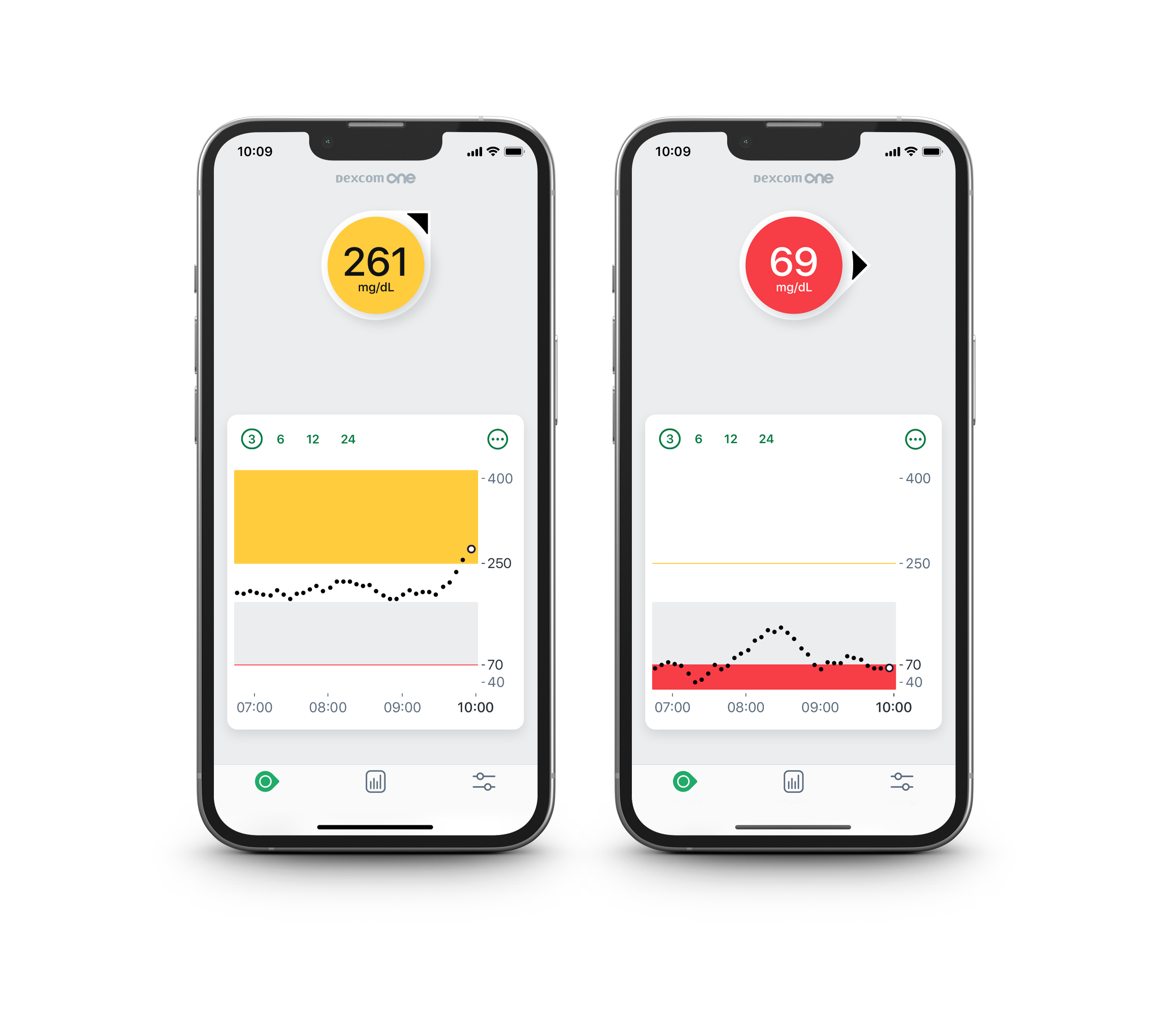Με την εφαρμογή Dexcom ONE, μπορείτε να βλέπετε τα δεδομένα γλυκόζης σε πραγματικό χρόνο, τις ειδοποιήσεις και τις τάσεις με την πάροδο του χρόνου στο συμβατό έξυπνο τηλέφωνο‡ ή δέκτη σας.§