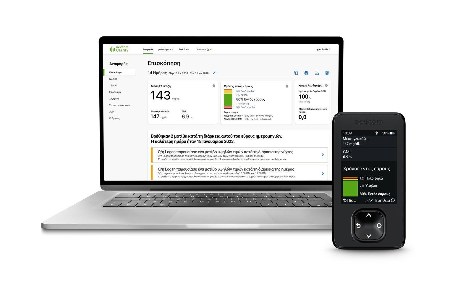 Περαιτέρω αναφορές και πληροφορίες σχετικά με τις τάσεις και τα μοτίβα του διαβήτη σας είναι διαθέσιμες στο λογαριασμό σας Dexcom Clarity.‡ Και επειδή όλα αυτά είναι διαθέσιμα με μια ματιά, μπορείτε να τα χρησιμοποιήσετε για πιο ενημερωμένες και αποτελεσματικές συζητήσεις με την ομάδα υγείας σας.‡