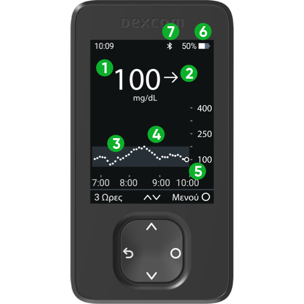 ‡ Απαιτείται σύνδεση στο διαδίκτυο για την αποστολή δεδομένων στο Dexcom Clarity.
