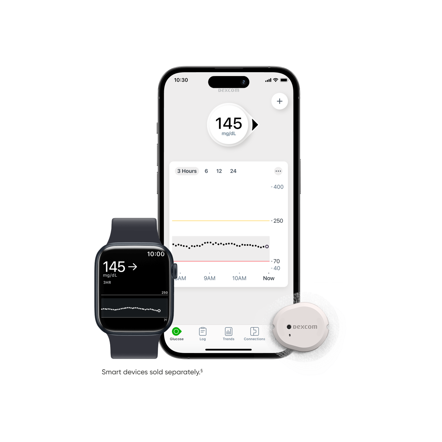Dexcom CGM Systems deliver real-time glucose numbers right to your smartphone§ or smart watch||—no fingersticks required.¶