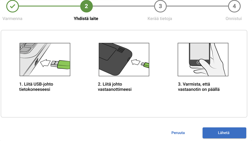 *Jos sinulla ei ole Dexcom G6 -vastaanottimesi mukana tullutta USB-kaapelia, ota yhteyttä tekniseen tukeen