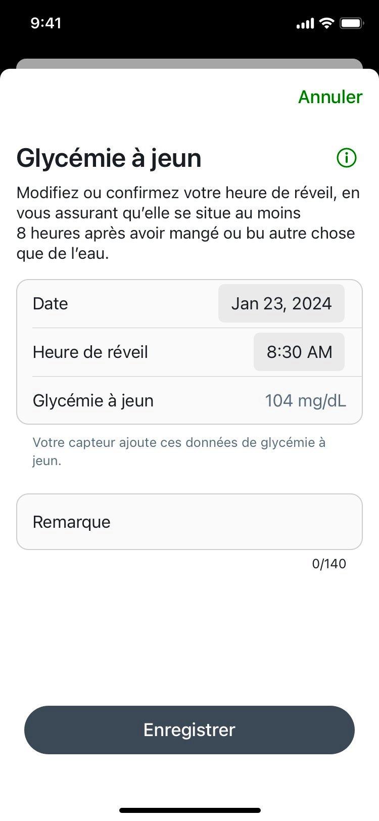 En collaboration avec votre professionnel de la santé, établissez un objectif de glycémie post-alimentation et un délai approprié, comme une ou deux heures, pour l'enregistrement de la glycémie post-alimentation dans le Dexcom Clarity.