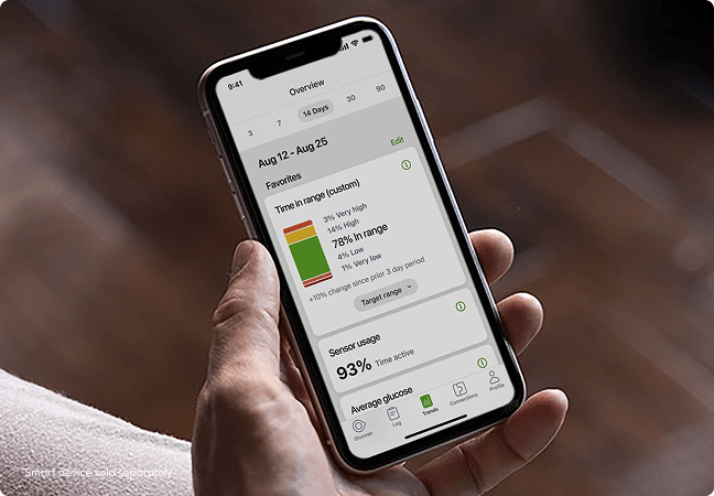 - Taux de glucose moyen : suivez votre taux de glucose moyen sur des périodes personnalisables.