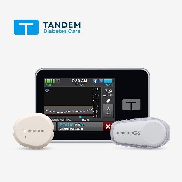 Le Dexcom G7* et la pompe à insuline t:slim X2 avec la technologie Control-IQ† communiquent via la technologie Bluetooth® pour créer un système facile à utiliser qui automatise l'administration d'insuline et aide à prédire ainsi qu'à prévenir les hausses et les baisses de glucose. Découvrez des fonctionnalités innovantes telles que le bolus mobile, les profils personnalisés et les paramètres de perfusion multiples.