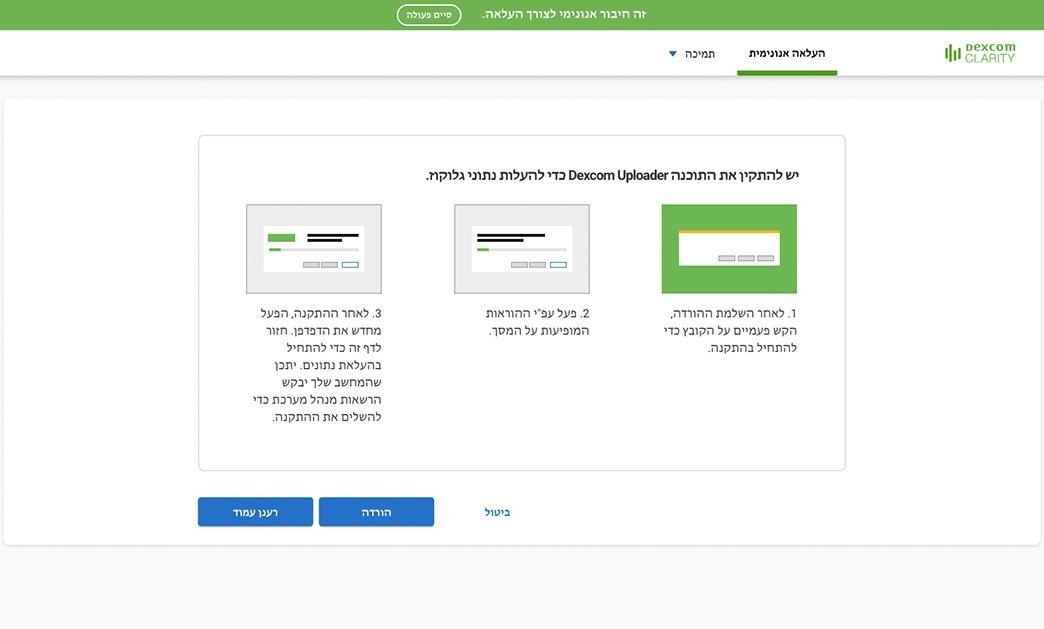 שלב 3: אם לא התקנת בעבר את "Dexcom Uploader" תתבקש להוריד את התוכנה למחשב שלך. אם "Dexcom Uploader" כבור מותקנת במחשב שלך, המשך לשלב 5.