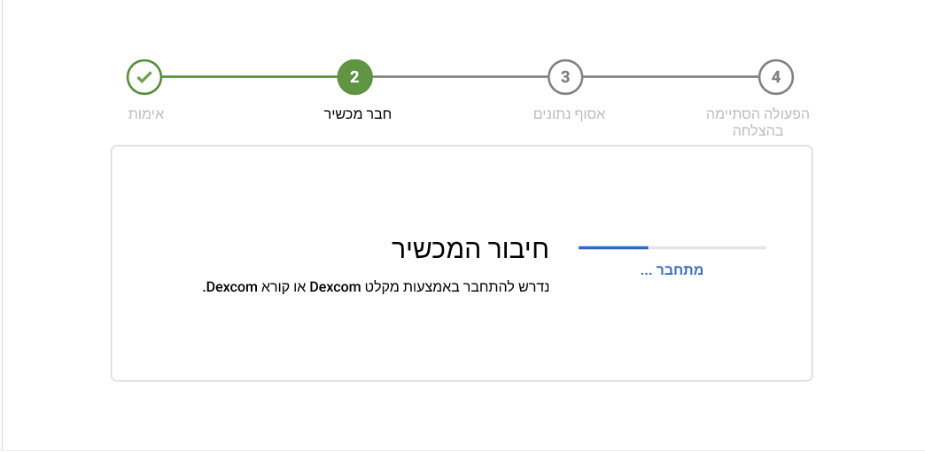 אם תלחץ על המשך, מקלט Dexcom G6 שלך יתחיל להתעדכן. המתן עד 15 דקות לסיום העדכון.