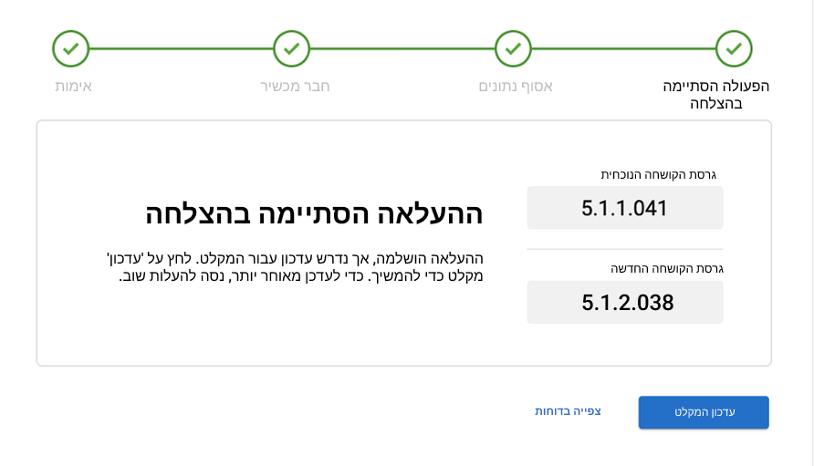 - לבצע את השלבים הבאים כדי להמשיך בעדכון
