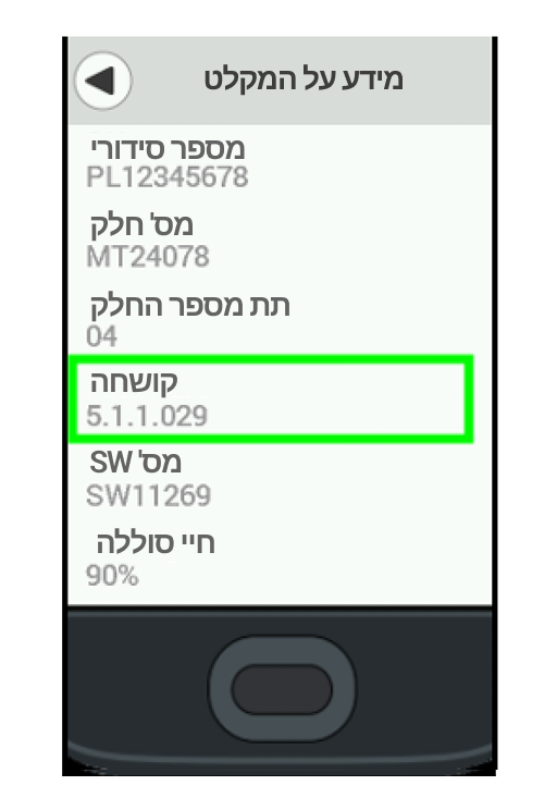 לידיעתך, התמונה הזו היא רק דוגמה למקום שבו מספר הקושחה מופיע בתצוגה של מקלט Dexcom G6. מספר הקושחה עבור עדכון זה הוא: 5.1.2.038