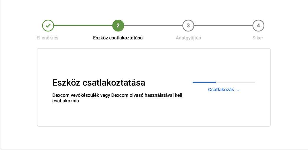 Ha a folytatásra kattint, akkor elkezdődik a Dexcom G6 vevőkészülék frissítése. Kérjük, várja meg a frissítés elvégzését, ami akár 15 percig is eltarthat.