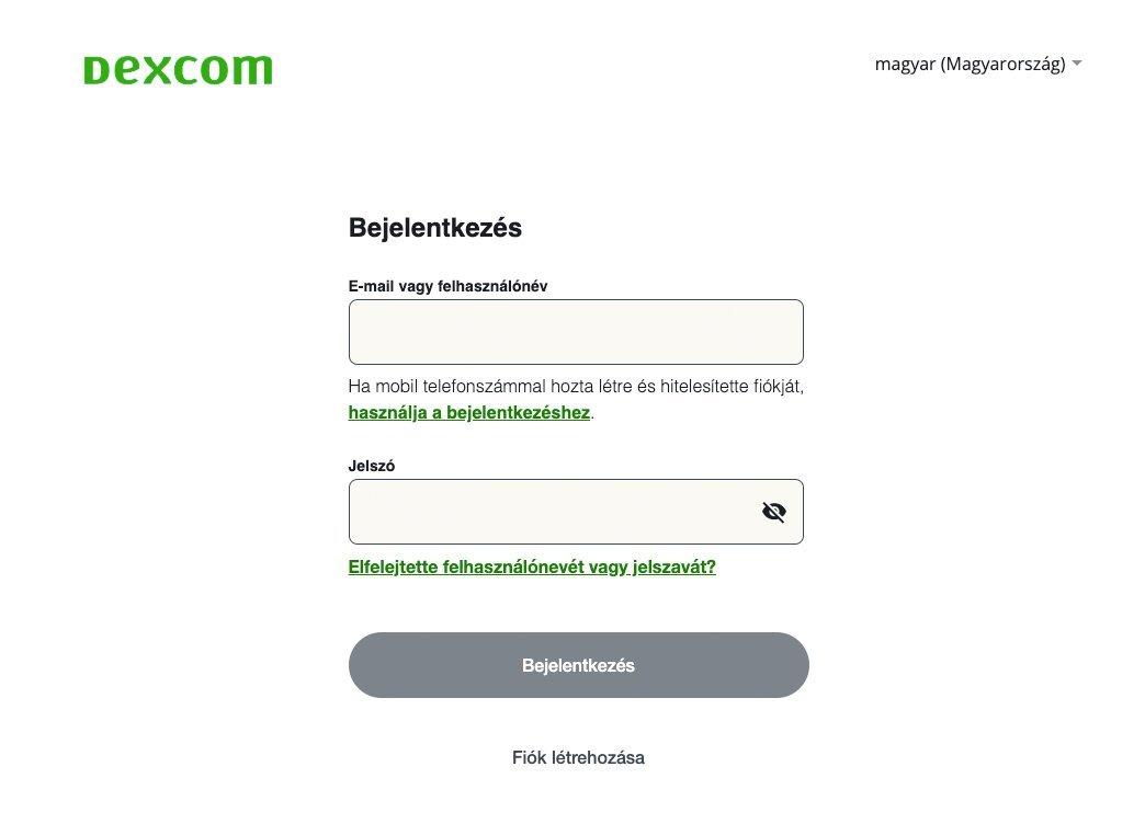 1. lépés: Számítógépén kattintson ide a weboldal eléréséhez: https://clarity.dexcom.eu/user/anonymous-update?locale=hu-HU. Ez a weboldal új ablakban nyílik meg