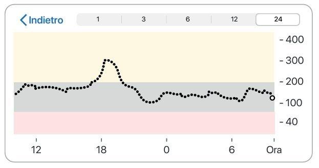Per visualizzare le letture dello sharer fino alle ultime 24 ore, girare il dispositivo smart su un lato (in orizzontale). Toccare e tenere premuto il grafico per visualizzare i dettagli.