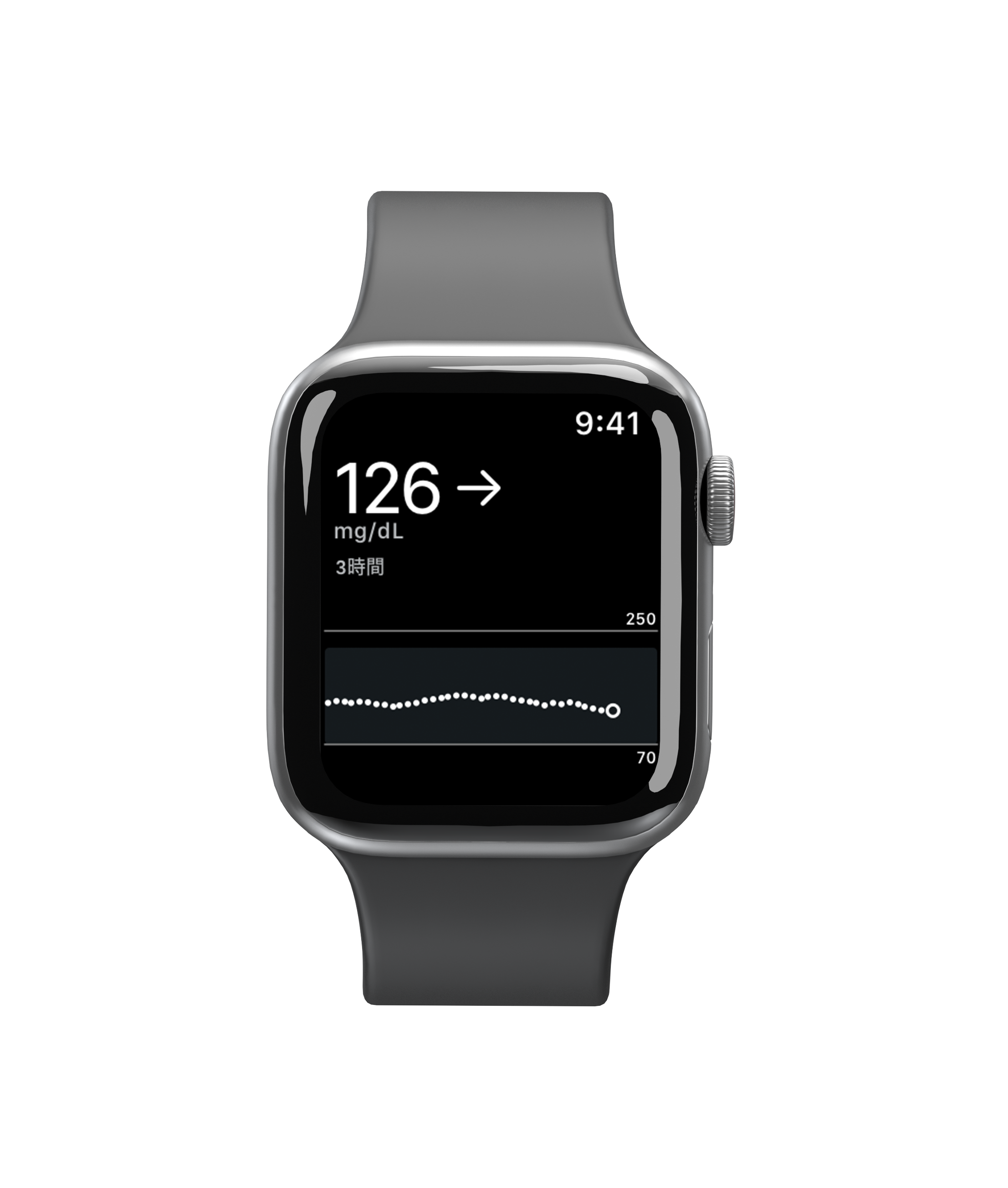 スマートフォンを持ち歩かなくても、Apple Watchだけでグルコース値データをリアルタイムに確認できます。運動中や外出時も、手首を見るだけでグルコース管理が可能に。