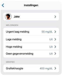 Uw volgers kunnen meldingen aanpassen. Volgers kunnen hun instellingen wijzigen zodat ze op de hoogte worden gesteld wanneer u bijvoorbeeld langer dan 30 minuten onder 70 mg/dl bent. Ze kunnen dit ook wijzigen om elke 2 uur op de hoogte te worden gebracht als u onder 70 mg/dl blijft.