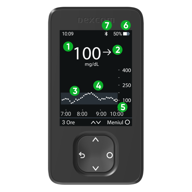 Notă: Dexcom ONE și Dexcom ONE+ au câte un receptor dedicat, astfel că trebuie să vă asigurați că selectați receptorul corect pentru sistemul dumneavoastră CGM.