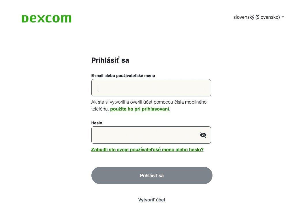 Krok č. 2: Prihláste sa pomocou prihlasovacích údajov do účtu Dexcom. Ak nemáte účet, vytvorte si ho.