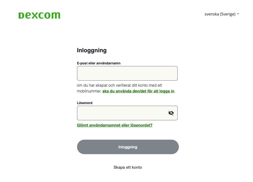 Steg 1: Klicka här från din dator för att komma till https://clarity.dexcom.eu/user/anonymous-update?locale=sv-FI