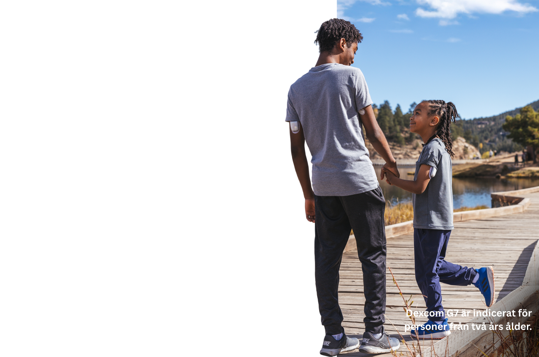 § Dexcom G7-sensorn är vattentät ner till 2,4 meter. Omnipod® 5 har en vattentät IP28-klassning för upp till 7,6 meter i upp till 60 minuter. Omnipod® 5 Handenhet är inte vattentät.