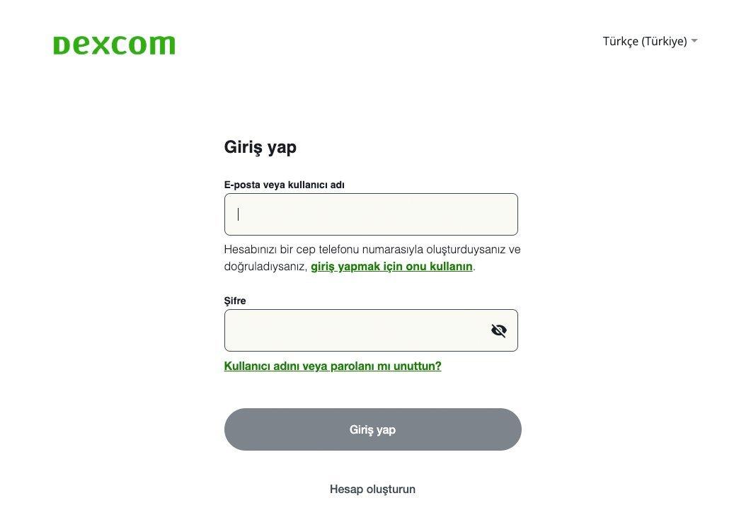 Adım 1: Bilgisayarınızdan erişim sağlamak için burayı tıklayın https://clarity.dexcom.eu/user/anonymous-update?locale=tr-TR