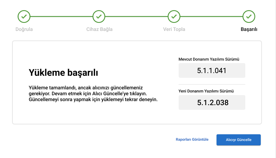 Alıcınızı güncellemek için adım adım takip edilecek talimatlar.